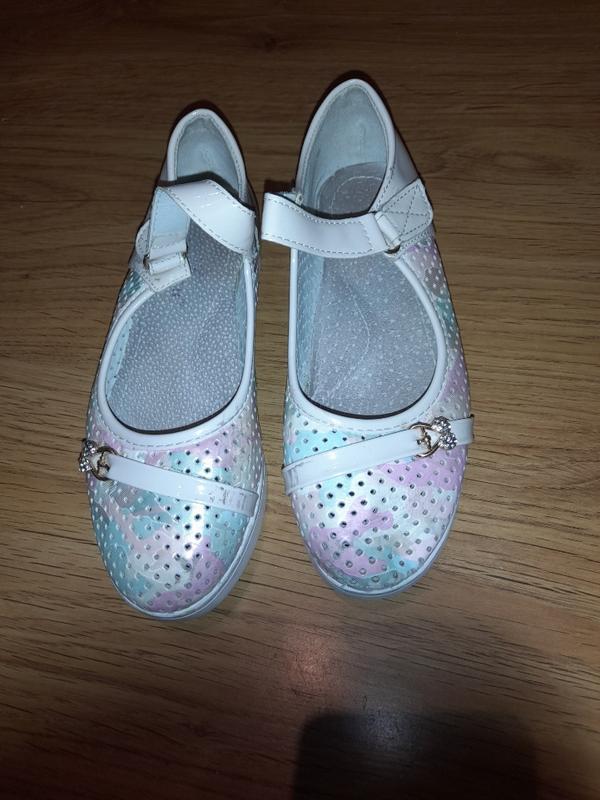 Детские туфли лаковые цветные на липучке внутри 21см.
