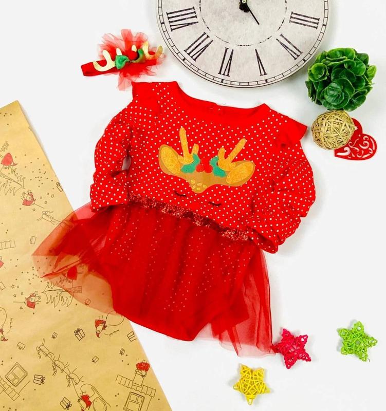 🎄Неймовірна новинка на прийдешні новорічні свята - наймиліший комплект для Ваших маленьких принцес. Комплект складається з бодіка (застібки - закриті кнопочки між ніжок) з пришитою яскравою спідницею з фатіну та аксесуар на голову. Бодік прикрашає оригінальний малюнок у новорічній тематиці. Полотно вироби - високоякісний, натуральний і гіпоалергенний матеріал Виробництво: Туреччина Щільна двонитка 100% бавовна 🎄🎄🎄Ціна 350грн☃️☃️☃️ Розміри 🎄9 місяців-1шт ☃️12 місяців -1 шт ☃️18 місяців-1шт 🎄24 місяців-1шт Заміри ⛄9м--довжина рукава від плеча 26см , довжена боді 36см , напівобхват під руками 22см ⛄12м--довжина рукава від плеча 27см , довжена боді 37см , напівобхват під руками 23см ⛄18м--довжина рукава від плеча 28см , довжена боді 38см , напівобхват під руками 24см ⛄24м--довжина рукава від плеча 30см , довжена боді 41см , напівобхват під руками 25см