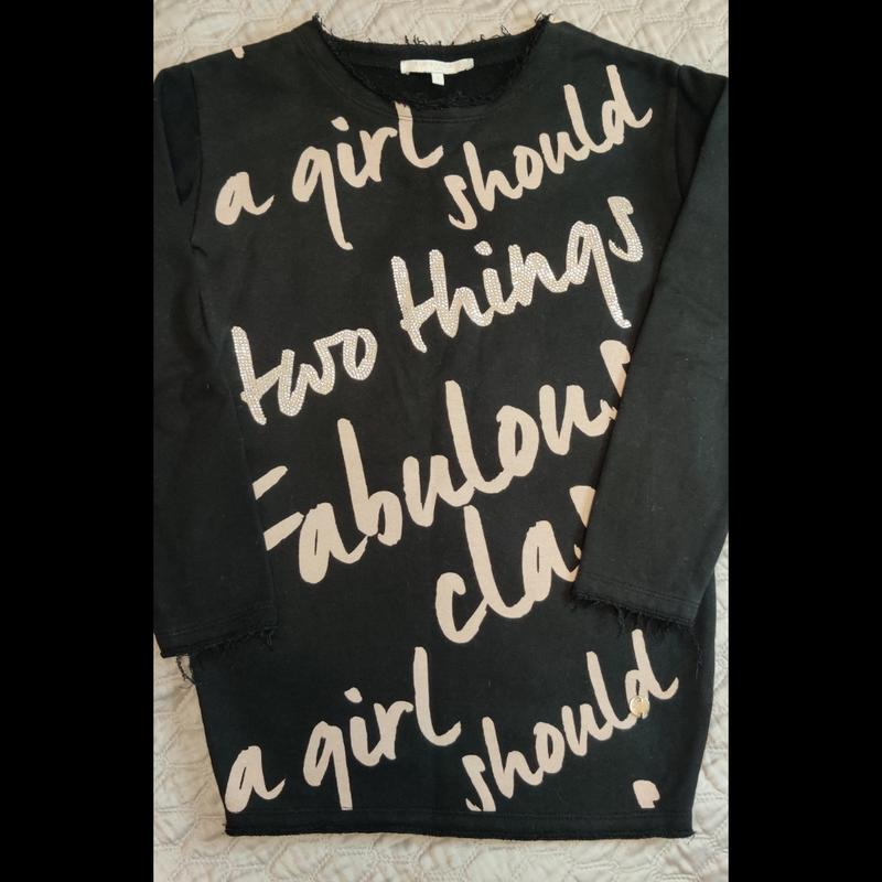 Туника для девочки. Цвет черный ,с надписями.Украшен стразами. Утепленная.Хлопок. Состояние отличное Замеры на фото в Одессе можно забрать в районе ЖД по Украине безопасная сделка