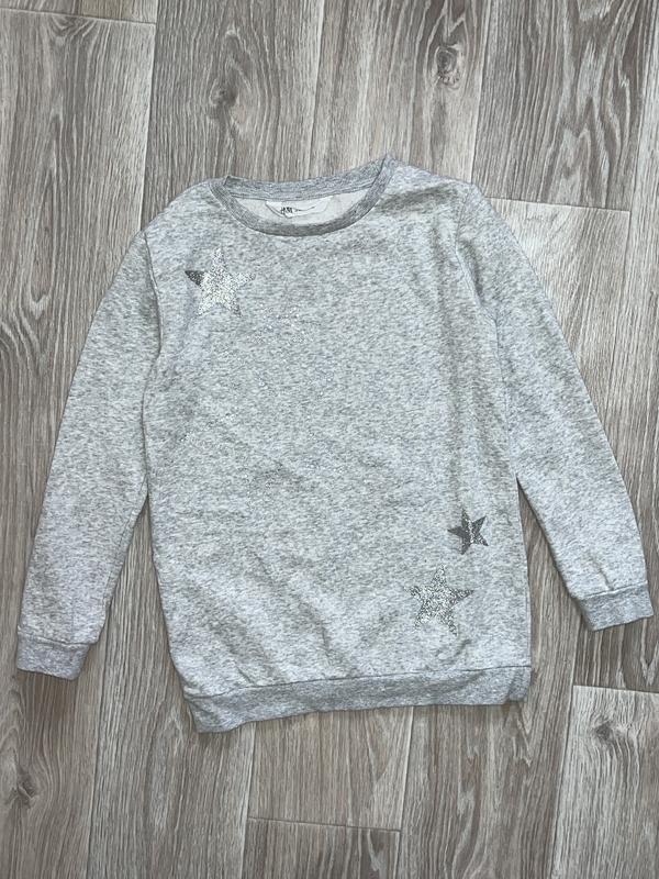 Туника на баечке Украшена стразами и серебристым напылением Состояние идеальное 🏷️H&M 8-10 лет/134-140 Длина 57. ПОГ 40. Рукав 48