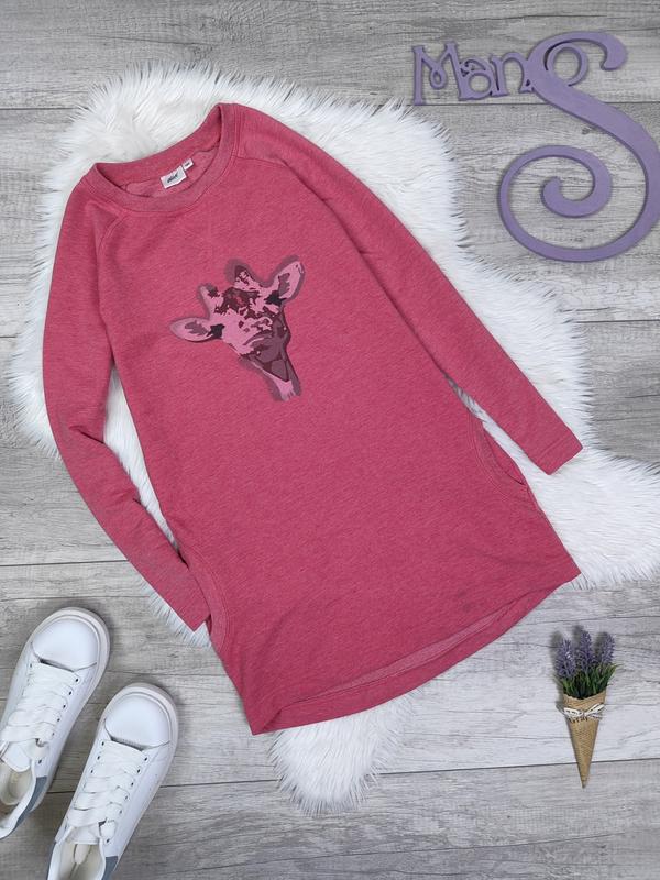 Туника с начесом для девочки Alive розовая с жирафом Состояние: б/у, в очень хорошем состоянии Производитель: Alive Размер: 164 Цвет: розовый Принт: жираф Замеры: Полуобхват груди: 42 см Полуобхват талии: 41 см Длина: 70-73 см Длина рукава от горловины: 61 см