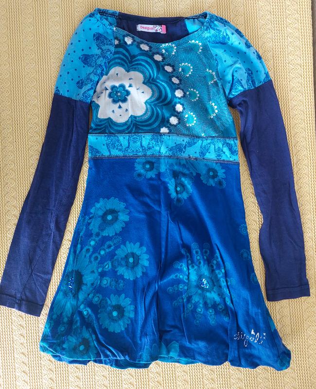 Туника детская Desigual. Синяя, с цветочным дизайном. 25 см по бюсту, 56 см рукава. 7-8 лет. Удобная, в очень хорошем состоянии.