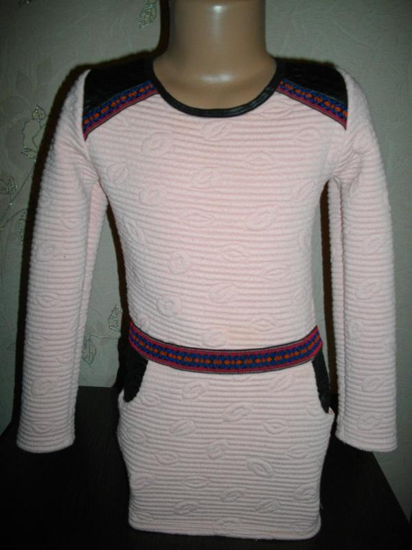 Платье- туника плотненький полиестер, 5 лет (110 см), как Новое, длина 54 см, рукав 42 см от плеча, от горловины 47 см, ширина 30 см под ручками. 190 грн.