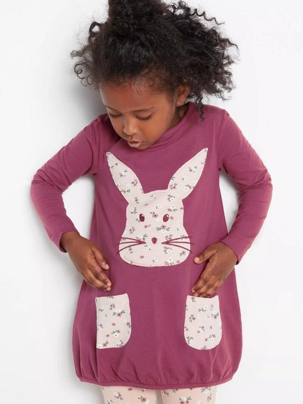 Туника с кроликом для девочки от Lindex. Производство Бангладеш. Состав: 95% хлопок, 5% эластан. Размер указан 122см/6-7лет. Состояние отличное. Дополнительная информация и замеры по запросу.