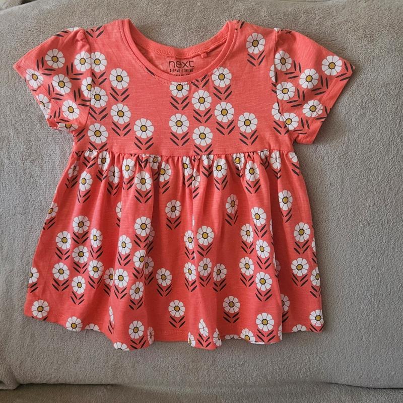 Дуже гарна туніка Next на дівчинку 4-5 років, класно підійде під лосинки/велосипедки/шорти тощо. Ширина під рукавчиками - 31 см, довжина туніки - 45 см.