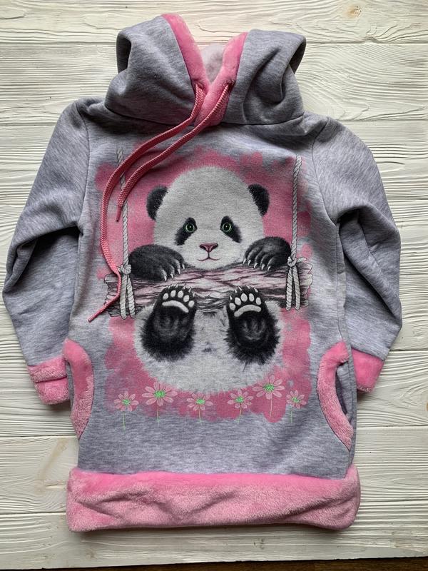Теплая туника свитшот на байке для девочки Размер 32 104-110 см Длина 51 см Ширина 33 см Длина рукава от шейки 41 см Состав 100% хлопок трех нить Производитель Украина