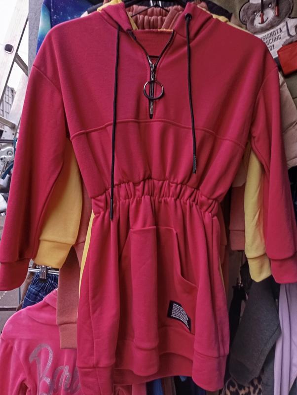 платье туника для девочки, ткань трехнитка петля, цвет малина, желтый желтый ярче чем на фото