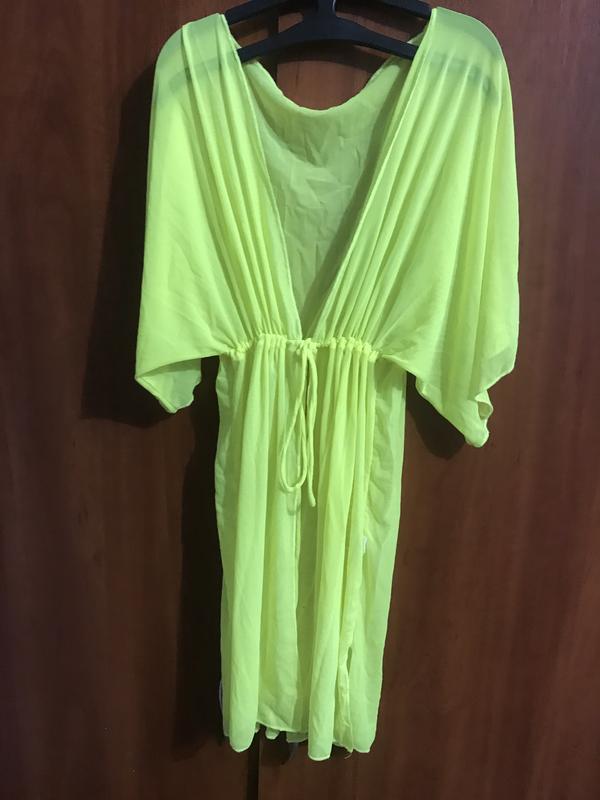 Пляжная туника для девочки 8-10 лет, новая. Ярко-салатовый цвет. Ткань сетка