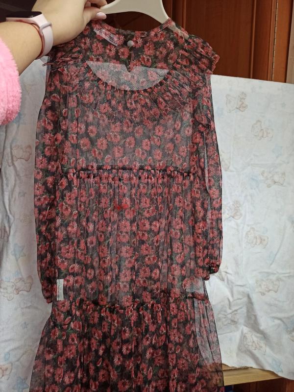 Прозрачное платье туника в цветочек. дефект- красное пятно. длина 78 см между плечами 33 см длина рукава 46 см ширина рукава 16 см пог 35 см пот 29 см пост до 53 см