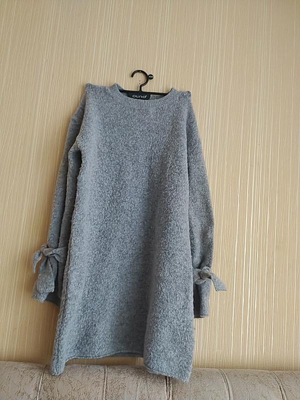 Тепла, базова туніка-сукня для дівчинки. Приємна до тіла. З красивими зав'язками на рукавах. Стан ідеальний. Довжина -60 см Довжина рукава від плеча -54 см ПОГ - 30 см