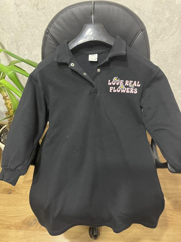 на девочку до 140 см. Полу о.г. 48 см. длина 70 см. Черная,позади большой рисунок