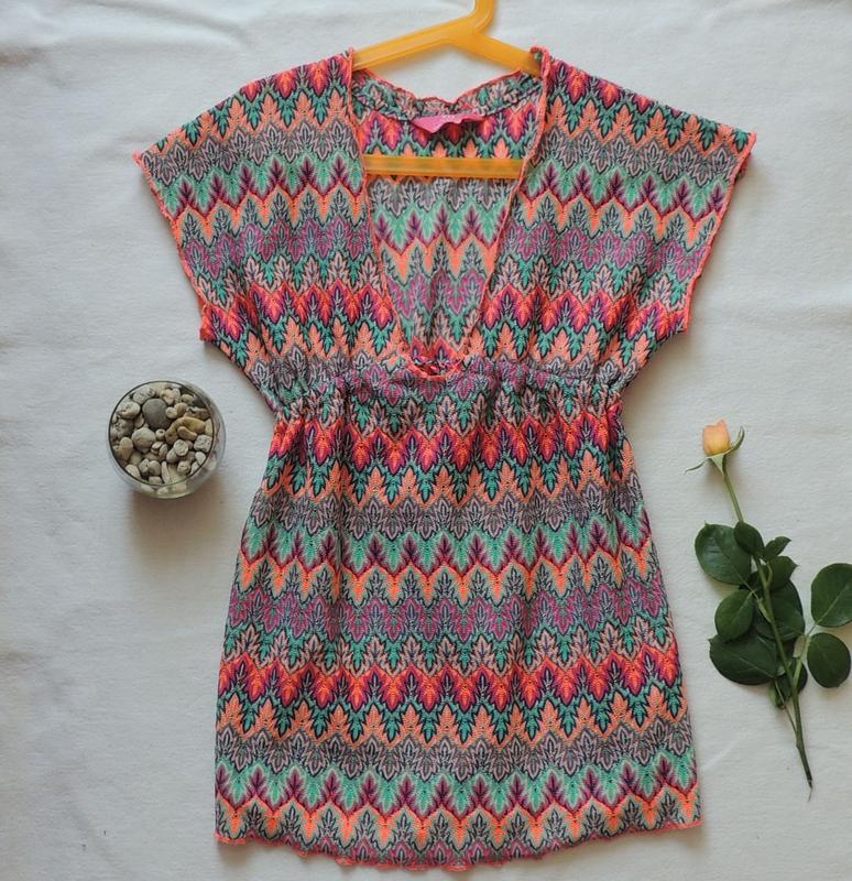 Літня пляжна накидка прямо зверху на купальник чи блузка грудьми резинка також регулюється зав'язками можна зафіксувати якщо розв'язати зав'язку то ширина буде 31 в спокійному стані легко тягну аж до 40 см бренд янди менше 7-8 років можна звичайно в 9 і навіть в 10 приблизно 44 см прохід для руки 17 поліестер