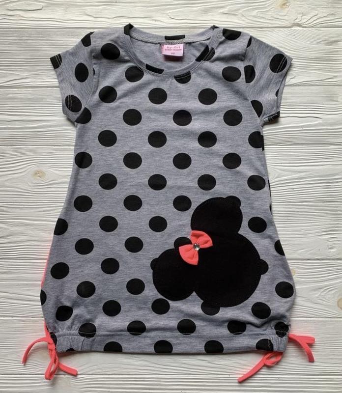 туніка футболка для дівчинки Розмір 110 см Довжина 51,5 см Ширина в талії 32 см Виробник: Туреччина Склад: 95% бавовна, 5 % еластан