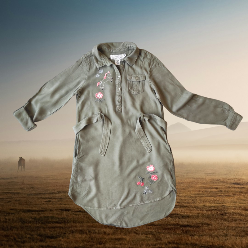 Сукня, туніка з поясочком H&М Розмір 9-10/140 Виміри: рукав + плече 57+8 см, пог 39 см, пот 40 см, пос 44 см, довжина 71 см перед, 78 см спинка. Є поясочок та кармашки. Тоненька та зручна туніка. Рукавички можна носити довгим або на підворот 3/4.