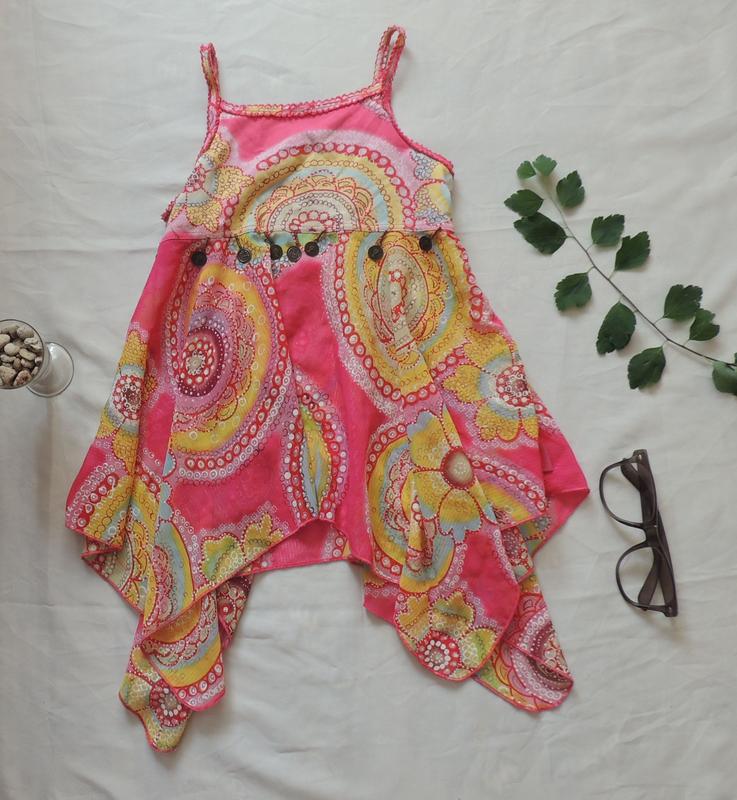 Легенька літня туніка на бретельках Дуже гарна літня доня вдягала її приблизно 8 років від 30 до 43 нижня частина шифонова гарноі симетрично пришита 🍋🍋🍋