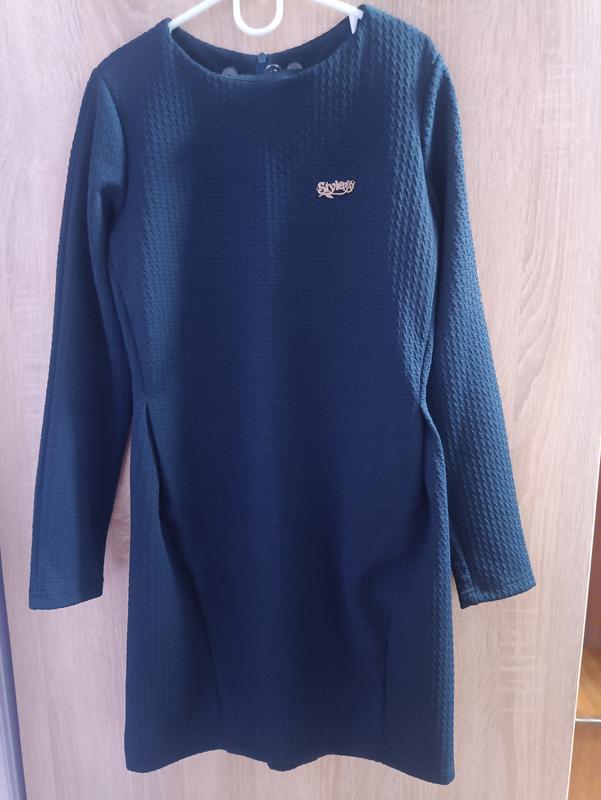 Платье притуплено, на стройную девочку, можно в школу. В комплекте есть белый воротничок, который пристегивается пуговицам. Рукав-52, ширина в плечах/ под ручками- 31/36, длина -72