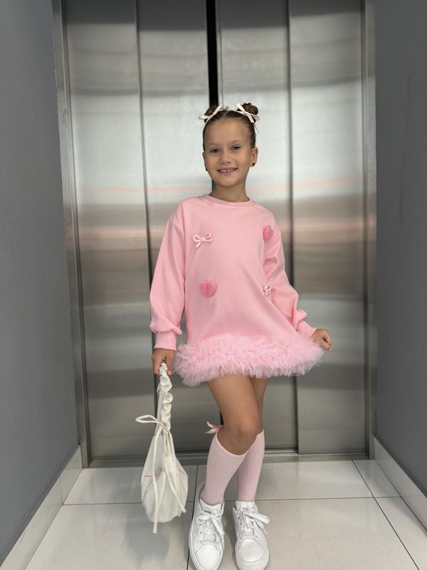 Необычайно красивое и нежное платье-туника для девочки в розовом цвете. Туника отделела мягкими сердечками и бантиками, дополняющими образ и придающими еще большую нежность. Размер 80 90 100 110 120 130 Перед заказом уточните наличие нужного размера