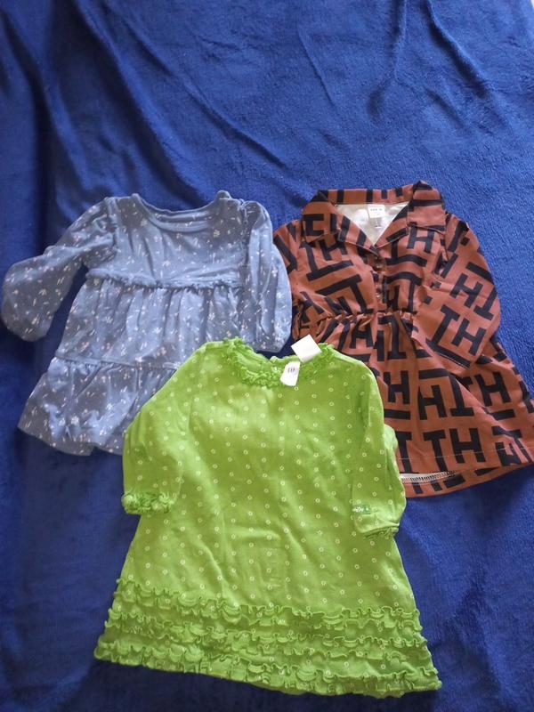 Нежное голубое платье с цветочным принтом, ярко-зеленое платье с рюшами и коричневая рубашка-платье с принтом. Все в хорошем состоянии, без пятен и повреждений. Возраст 3-6 месяцев Цена за все три - 150 грн. Можно по одному - 70 грн/шт. В нашем профиле есть еще детские вещи — смотрите другие объявления 😊