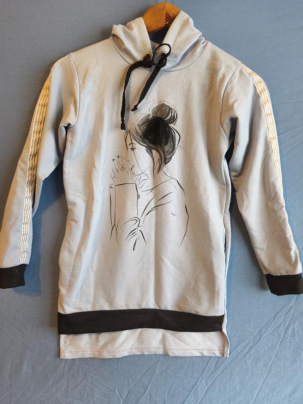 Длина по спине 66см, спина удлинена, имеет квадратный крой, спереди 55см., длина рукава 51, полу объем груди 40 ( тянется до 44), по низу 40 (тянется до 44). Имеет капюшон и карманы.
