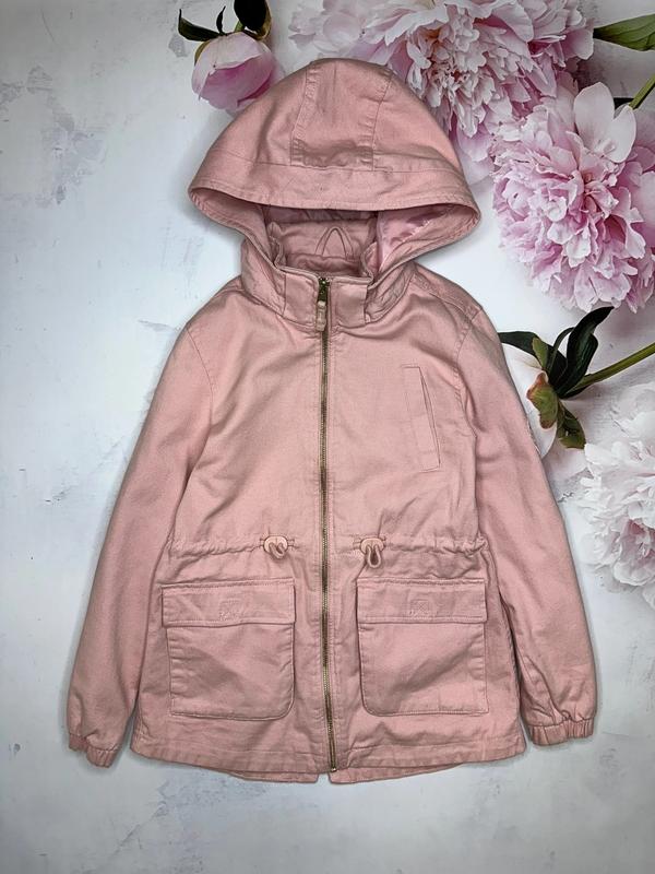 Джинсовая парка на подкладке полиестер Утяжка в талии действующая Капюшон съемный Сезон Деми, без наполнителя(как ветровка) 🏷️H&M 9-10 лет/140 Длина 62. ПОГ 40. Рукав 51