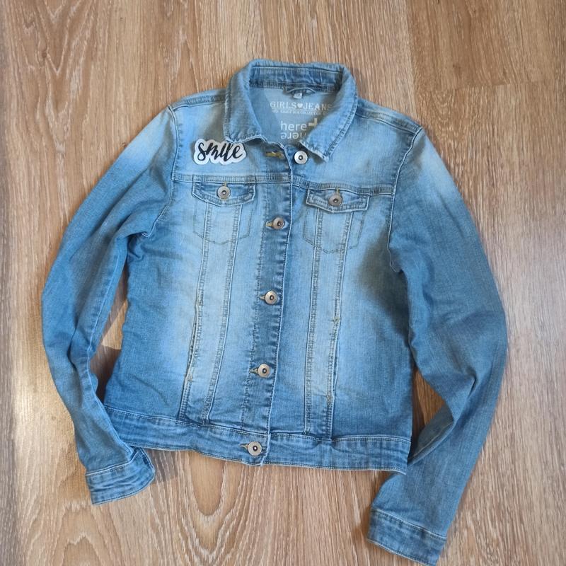 Джинсовка на дівчинку 158 розмір, стан чудовий. Довжина 48 см, рукав 56 см. півобхват грудей 40 см .