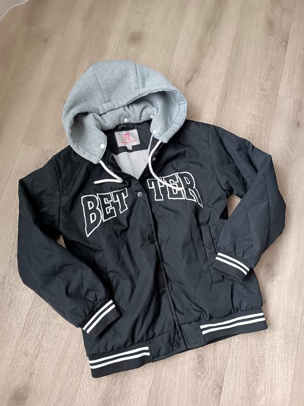 Ветровка с капюшоном. Капюшон снимается. Есть утепление. На 10-12 лет, р-р указано 152 см Состояние замечательный, цвет - насыщенный черный, не выгорает