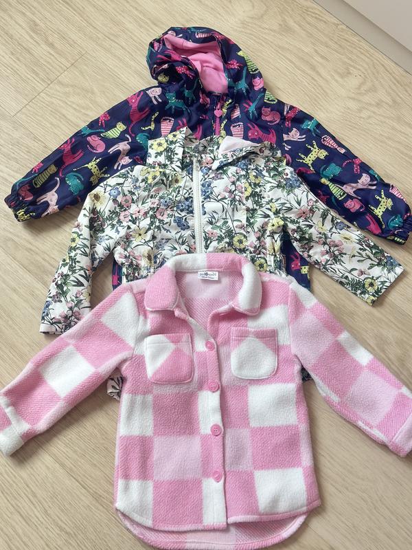 Продам одним лотом Все в хорошем состоянии Все на 2-3 года (92-98) (моя высокая но носила в 3,5 тоже еще Теплая рубашка модная И две ветровки легкие не продувают Цена за 3 вещи