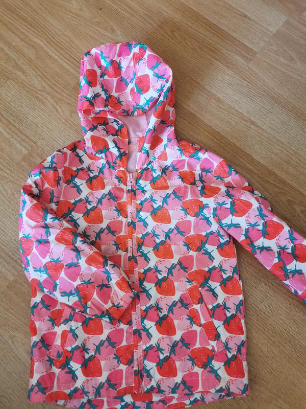 Ветровочка на девочку 4-6 лет, лёгкая, складывается в сумочку, очень удобно взять с собой на прогулку, в идеальном состоянии. Замеры : Длинна по спинке 49 см, в груди 37 см, длинна рукава от плеча 39 см.