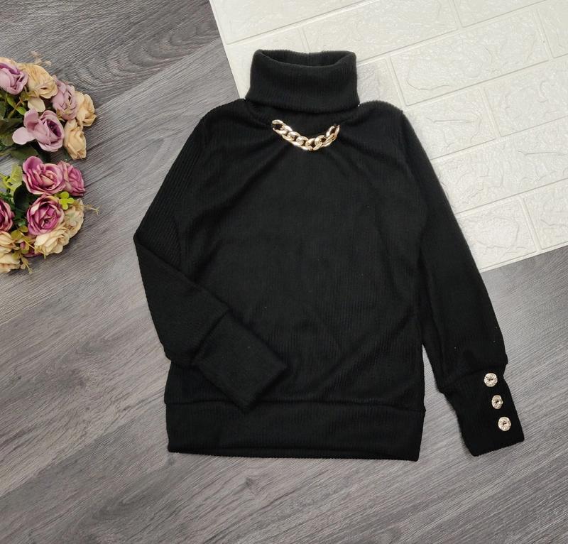 ток Теплий гольфик тканина трикотаж рубчик з ворсом прикрашено ланцюжком та гудзиками РЕКОМЕНДУЮ!!! заміри:довжина/рукав/пог 134р-45/44/36 140р-47/47/36 152р-51/50/39 +-2см чорний 134р -1шт 140р-1шт 152р-1шт
