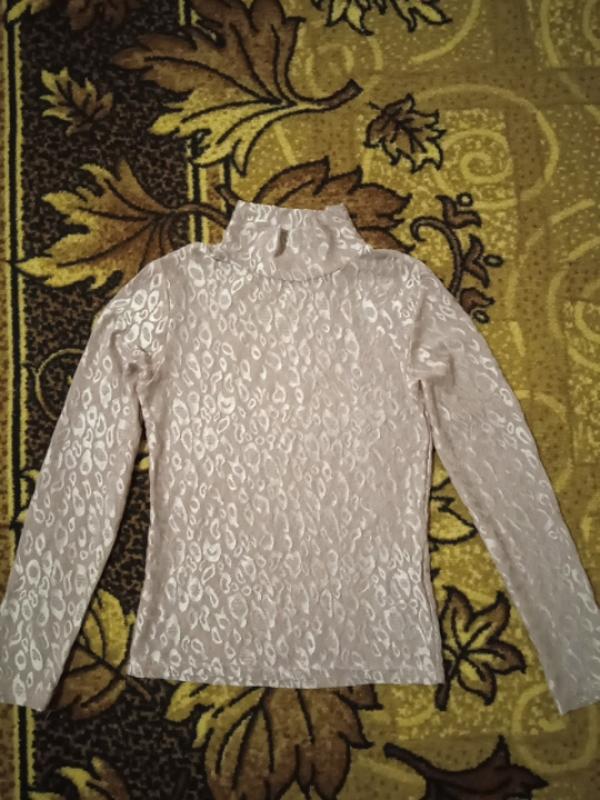 Гольф на девочку, возраст около 8-10 лет, длина 50 см, полуобхват груди 30 см, рукав 47 см. Целый, без пятен, просвечивается.
