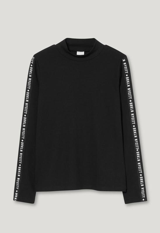 Топ-поло из эластичного трикотажа в рубчик с декоративной отделкой на рукавах.