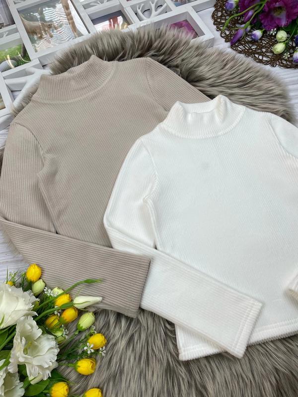 💝Теплий гольф для красунь 🏷Размеры: 134-152 🪡Ткань: ангора рубчик, мягкая и приятная к телу, горловина хорошо тянется Цвет: беж и молочный 📐Замеры: длина/пог/рукав от плеча 134 - 42/32/49 140 - 44/36/50 146 - 46/38/53 152 - 48/39/56