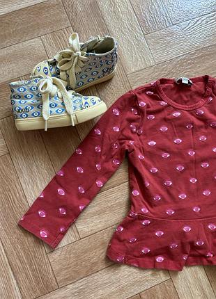 Брендова дитяча кофта, фірми Kenzo. Прикольний принт у вигляді очей, продаю кеди з подібним принтом, класно поєднуються. У кофтинки є брендовані кнопочки, і воланчик по низу. Відтінок червоного ближче до останнього фото.