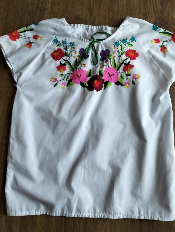 Продам бу вышитую летнюю блузку:рукав от шеи-21см,ширина-48/96см,длина-56см