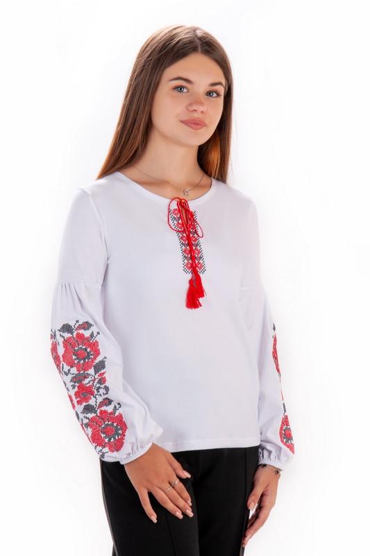 Невероятная вышиванка для девушек-подростков с пышными рукавами, изготовленная из высококачественного полотна "Стрейч-кулир пинье " - эластичное и приятное к телу, красиво садится по фигуре. Изюминка данной модели - это интересный вышитый узор и объемные рукава снизу присобранные на резинке. Вышиванка отлично комбинируется с юбкой или брюками и станет дополнением любого праздничного или торжественного образа. Полотно: стрейч-кулир пенье Склад: 95% бавовна, 5% еластан Рекомендации по уходу: стирать при температуре не более 30°C. Допускается стирка в режиме "ручная" или "деликатное", вышивку гладить только по изнаночной стороне.