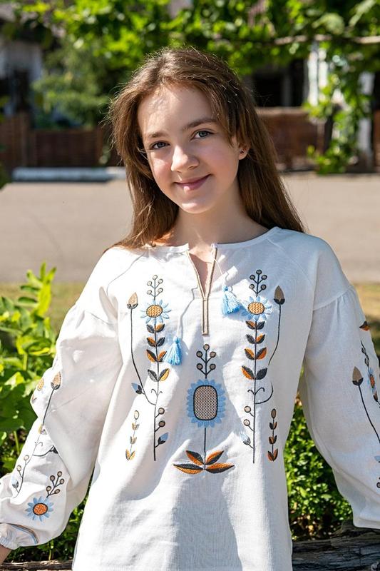 Вышиванка для девочек-подростков, молочная. Льон. 122см до 134 см