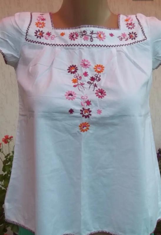 Детская футболка-блуза из хлопка с вышивкой,на 7-8 лет.
