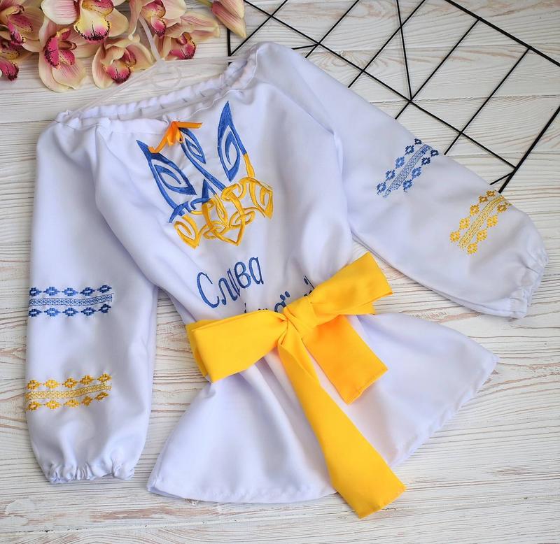 Вышиванка на девочку "Слава Украине"Белая Описание ✅Арт: 72225 ✅Выр-во: Украина ✅Тка-на: Мадонна ✅Дополнительно: вышивка машина, пояс в подарок (может быть желтого или голубого цвета) ✅Замеры: длина/ширина/рукав от горловины 116--53/41/51 122--54/42/52 128--55/43/53 134--56/43/54 140--60/44/55 146--62/45/56 152--63/46/57 158--65/46/58 164--68/47/59 ✅Возможна погрешность в измерениях +- 1/2 см 116 - 1шт 122 - 1шт 128 - 1шт 140 - 1шт 152 - 2шт 158 - 1шт Цена: 799 грн. Код 181
