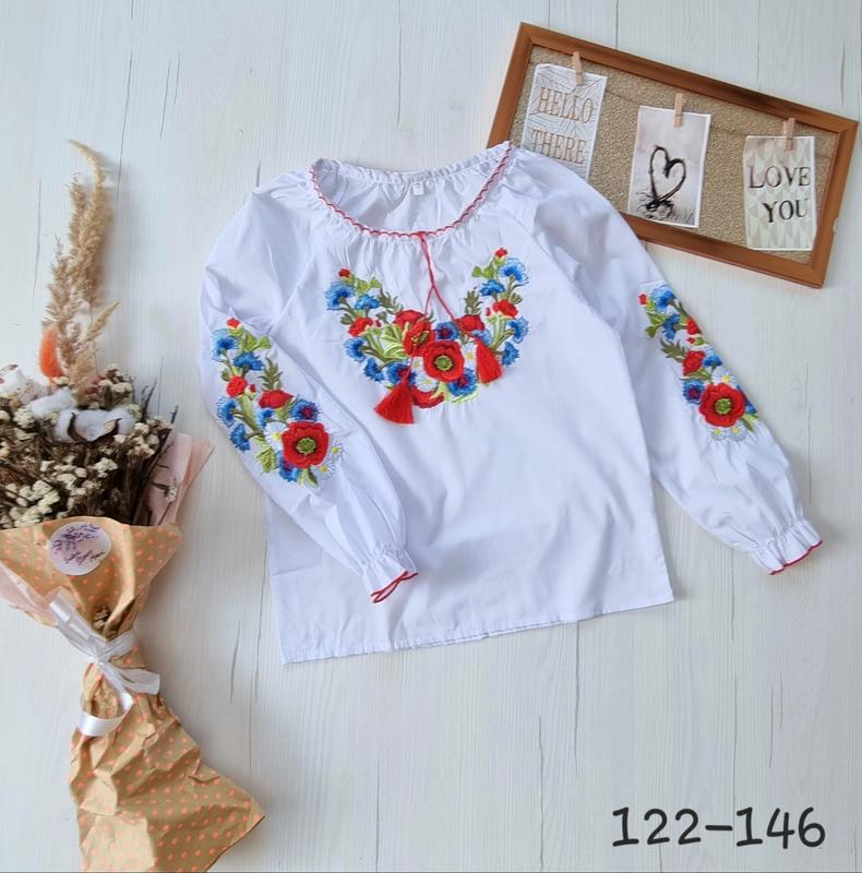 ВЫШИВКА для девочки 🔹128р- длина 52, пог 38, рукав 55 +-1 см ткань поплин, отличное качество, настоящая вышивка, не рисунок шнурочек рабочий (можно стянуть) РЕКОМЕНДУЮ кон