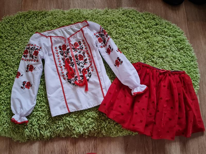 Вышиванка в новом состоянии. Одетая 1 раз. На одну годину. Юбка в идеальном состоянии Ціна за комплект. Вышиванка: Длина 43 Ширина 37 Рукав от горловины 44 Юбка Длина 30 Пояс 25