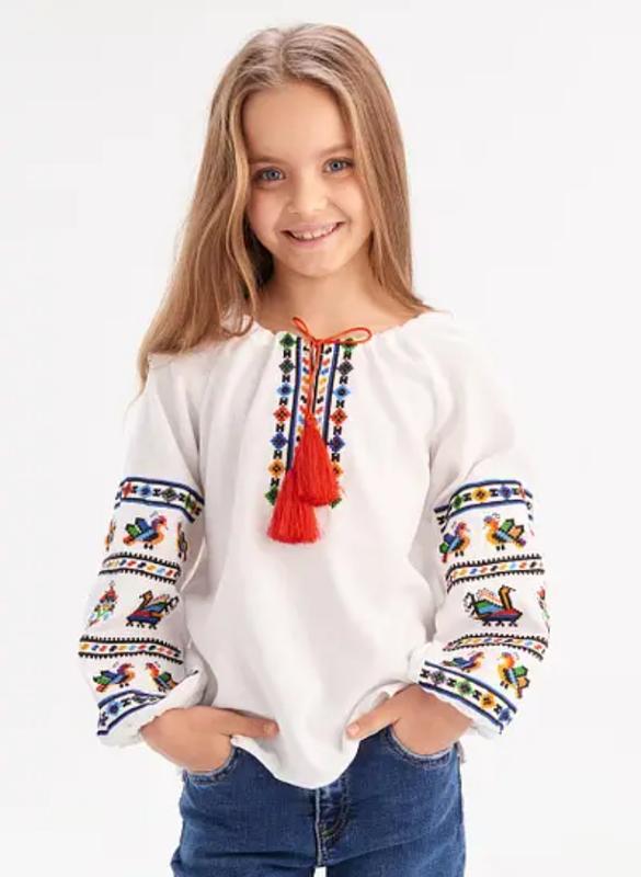 Размеры от 104до 158 Тканина - домоткане полотно Состав ткани - 52% хлопок, 48% полиэстер Вишивка машинна, хрестиком Гэри уточнять наличие размеров