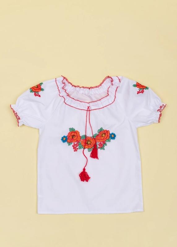 Вышиванка для девочек Цвет: белый Материал: поплин (хб + полиэстер) Страна производитель: Украина Размеры 128-146