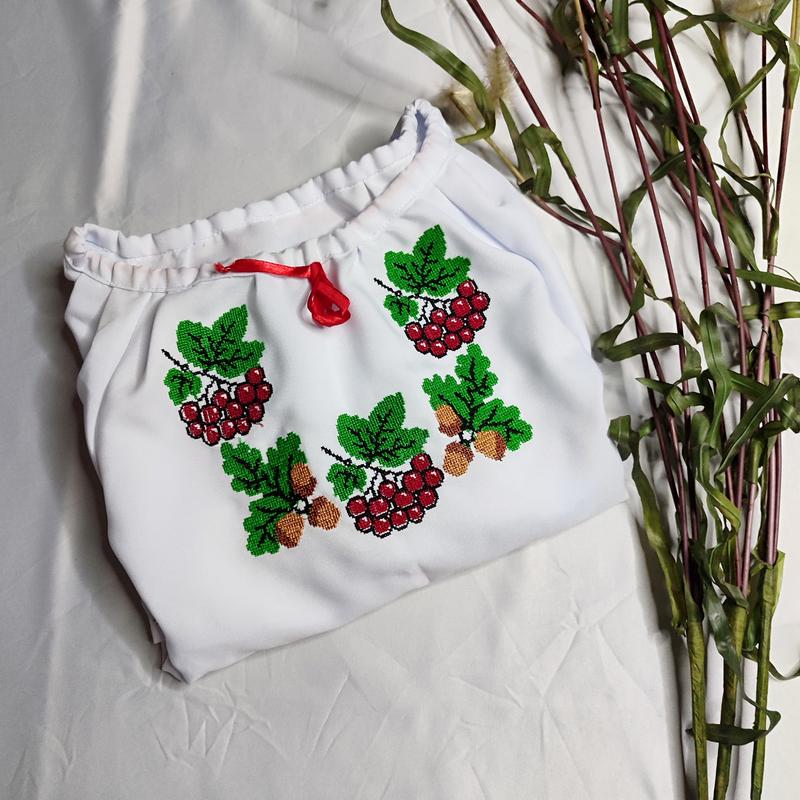 Вишита блузка для дівчинки ◽Ціна 660 грн ◽ Тканина: габардин ◽Колір: білий ◽Розмір: 122 (7 років) ◽Заміри: ПОГ 37 Довжина 49 Довжина рукава 48