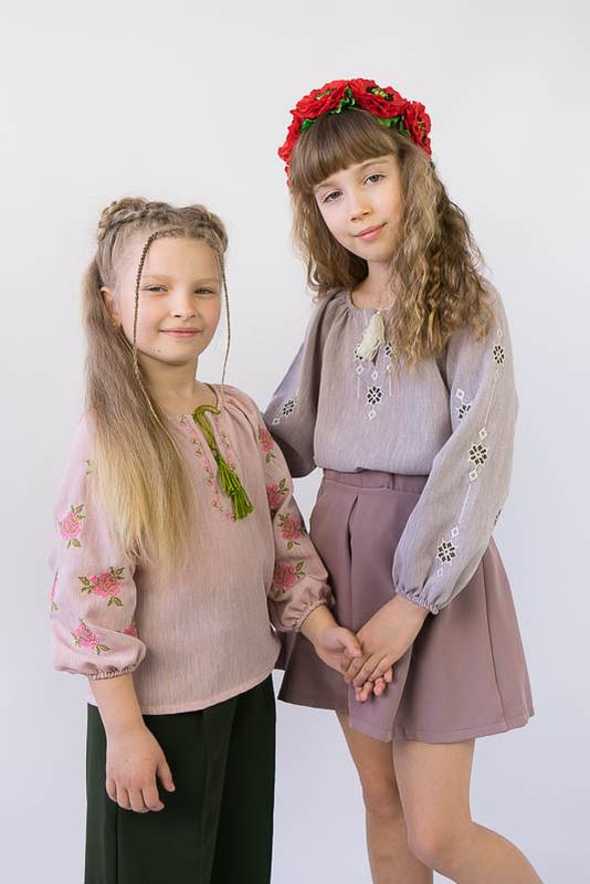 Вышиванка для девочки выполнена из облегченного материала, основой которого служит лен. Это тонкая и легкая ткань с превосходным внешним видом. Прекрасно держит форму, не мнется, имеет хорошую гигроскопичность. Модель свободного кроя с длинным объемным рукавом. Передняя часть изделия и рукава украшены машинной вышивкой.