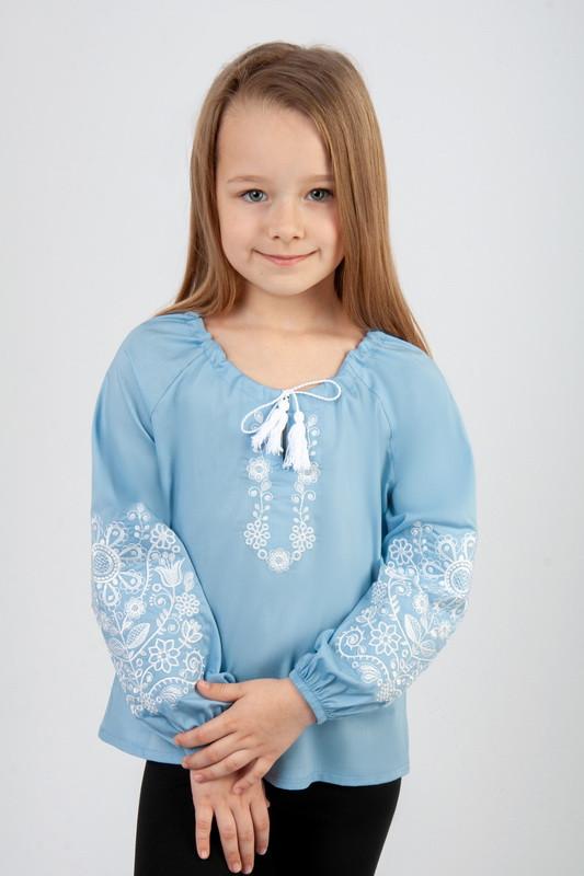 Вышиванка голубая для девочки, вышитая рубашка с длинным рукавом, блуза с вышивкой с пышны...
