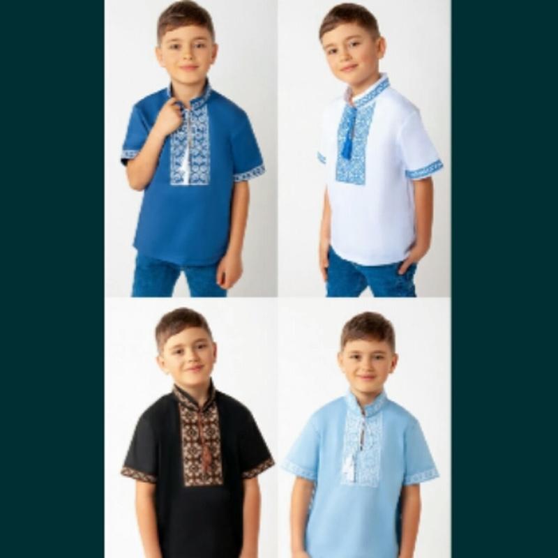 цена зависит от размера: 98-400 104-430 110-460 116-500 122-540 Вышиванка для мальчиков с коротким рукавом выполнена из полотна "Поликоттон". Поликоттон – износостойкий, прочный материал, который долго прослужит, не теряя своего первоначального вида. В данной ткани гигроскопичность и воздухопроницаемость хлопковых волокон дополнена практичным и прочным полиэстером. Данная модель прямого кроя, имеет воротник-стойку, рукава и перед вышиванки украшен вышитым орнаментом. Полотно: поликоттон Состав: 75% хлопок, 25% полиэстер. Вышитый орнамент: машинная вышивка Советы по уходу: стирать при температуре не более 30°C. Разрешается стирка в режиме "ручная" или "деликатная", вышивку гладить только с изнанки.