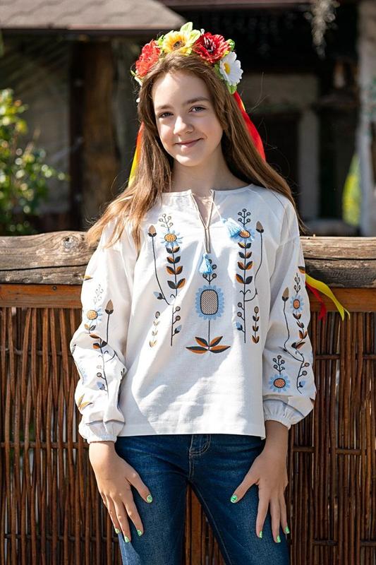 Вышиванка для девочек-подростков, молочная Материал- Лен размер 122-164 цена зависит от размера