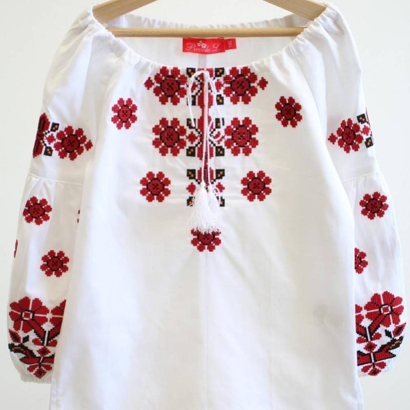 Вышивка красными и черными нитями. Натуральная ткань приятной для тела. Рукава на резинке.