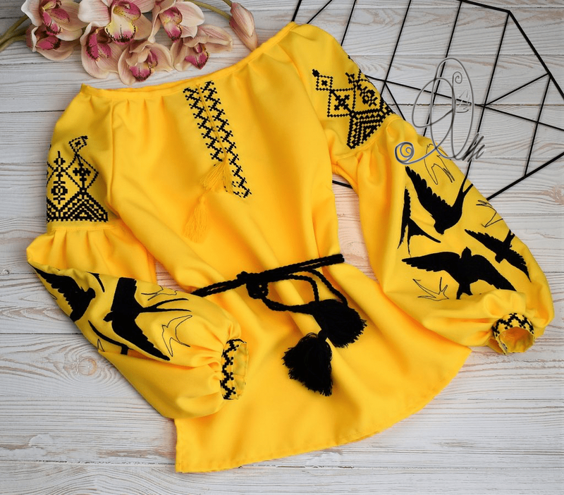 Выр-во: Украина ✅Тка-на: габардин ✅Дополнительно: вышивка машина, пояс в подарок ( может быть цветной), рукав Бохо Кисточка на горловине может быть, черная или желтейка. ✅Замеры: длина/ширина/рукав от горловины 122см--56/40/50 128см--57/41/51 134см-59/43/53 140 см-61/44/55 ✅Возможна погрешность в измерениях +- 1/2 см