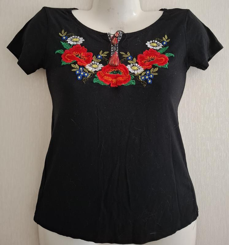 Вишиванка-футболка,вишивка машинна.Завязки, Розмір:S(40/42) Віскоза,,бавовна